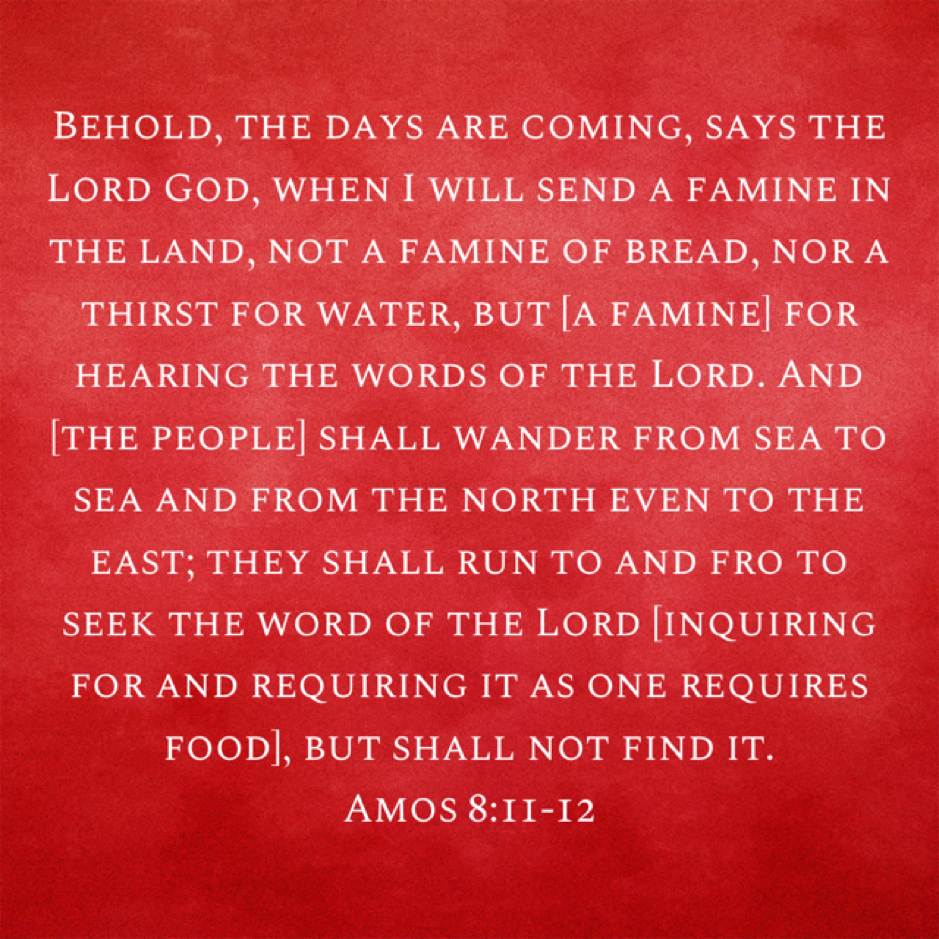 Imagine the tears of joy when we again feel His Holy Spirit, the joy of salvation, and the sweet sustenance of His word.
